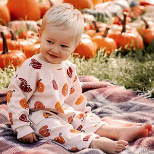 Eevi Pajac niemowlęcy Halloween – ecru, dynie, bawełna, bez stópek