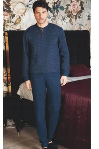 Piżama Damska długi rękaw, spodnie Emilly Italian Fashion - granat/druk
