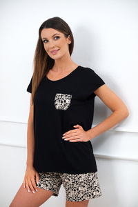 Piżama Damska krótki rękaw, krótkie spodenki Picos Italian Fashion - czarny/druk