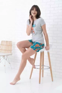 Piżama Damska krótki rękaw, spodenki Oceania Italian Fashion - melanż/druk