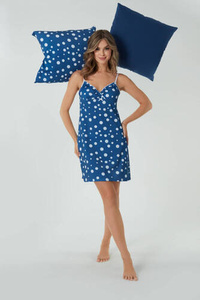 Koszula nocna na wąskim ramiączku Ojos Italian Fashion - druk niebieski