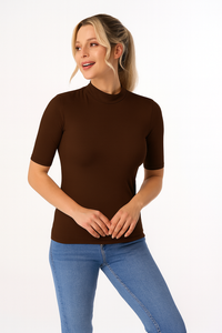 Layla Bluzka półgolf Babell brązowa - wiskoza z elastanem, krótki rękaw