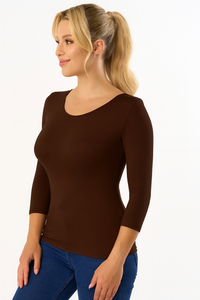 Manati rękaw 3/4 Bluzka damska Babell brązowa - wiskoza z elastanem