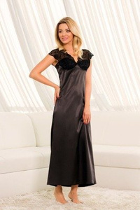 Kalimo Mactan – satynowa halka nocna z koronkowym dekoltem, czarny