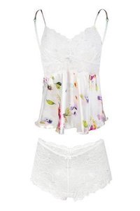 Piżama Damska Satynowa Flowers DKaren - DK-KC 3 biały
