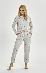 Taro 3430 Adele piżama damska szara z wiśniami bawełna długi rękaw