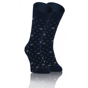 Classic Skarpety męskie garniturowe Sesto Senso wzór kotwice granatowy