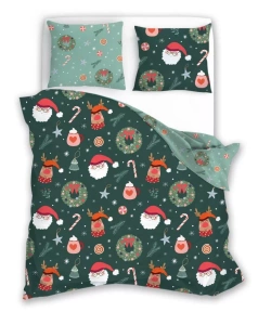 Scandic 079 Scandic Faro szara z Mikołajami – pościel świąteczna dwustronna, bawełna 100%, komplet