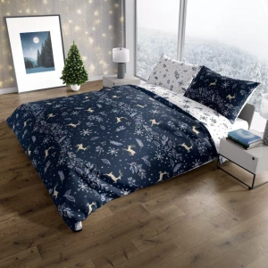 Scandic 068 Scandic Faro biała granatowa renifery – pościel świąteczna dwustronna, bawełna 100%, komplet