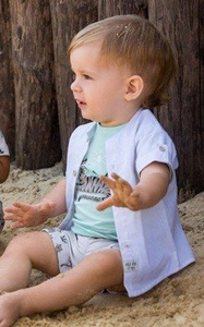 Bawełniany pajacyk niemowlęcy Eevi Beary Cool – ecru, haft misia, napy