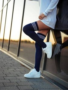 0293-002 Ściągacz w paski Zakolanówki damskie Milena- granatowy