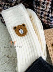 YN5031 Buźka miś Ciepłe skarpety damskie Magnetis beżowy– prążkowane z haftem