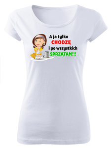 Koszulka damska "A ja tylko chodzę i po wszystkich sprzątam" Moocha biały