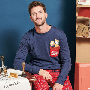 Gioew Sorbetto niebieska – świąteczna piżama męska z nadrukiem i spodniami w kratę