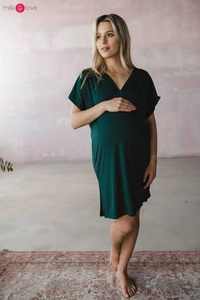 Koszula nocna ciążowa i do karmienia krótki rękaw Night & Day Milk&Love butelkowa zieleń