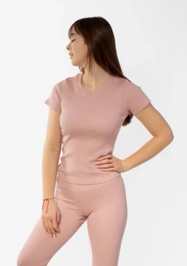 Bluzka damska prążkowana Halima Dkaren - pudrowy
