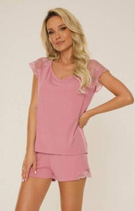 Piżama Damska krótki rękaw, spodenki Leta Italian Fashion - druk/róż pudrowy