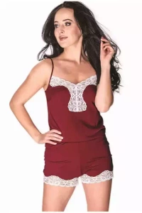 Silver Szlafrok Damska krótki rękaw Satyna Italian Fashion- granat