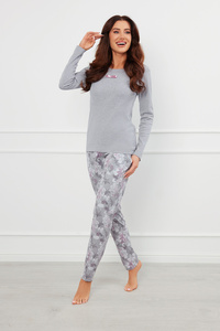 Piżama Damska długi rękaw, długie spodnie Ibena Italian Fashion - melanż/druk