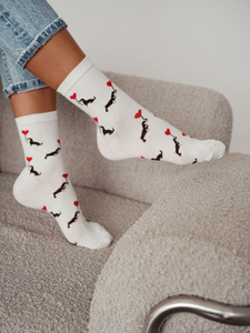 Milena 0200-201 ecru– skarpetki damskie z jamnikami i serduszkami, bawełniane, Walentynki 37–41