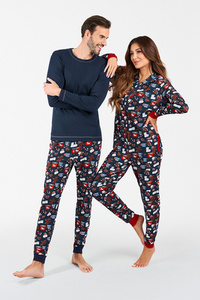 Piżama Damska długi rękaw, długie spodnie Makala Italian Fashion - granat/druk