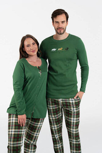 Piżama Damska rozpinana długi rękaw, długie spodnie Asama Italian Fashion zielony/druk
