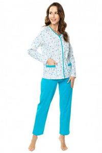 Piżama damska 86566 Anna rozpinana Mewa - biały-turkus