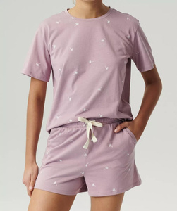 Piżama Damska krótki rękaw, krótkie spodnie Genua Italian Fashion - wrzosowy/druk