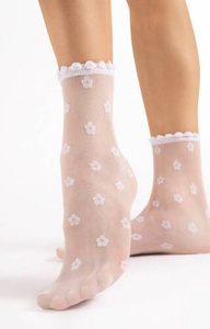 0989-003 Ażur Paski Skarpety damskie ażur Milena - ecru-zielony