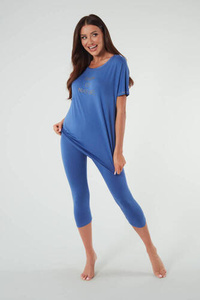 Piżama Damska krótki rękaw, 3/4 spodnie Natura Italian Fashion - niebieski