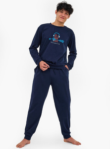 Cornette 998/56 granatowa – piżama młodzieżowa chłopięca, bawełna, nadruk