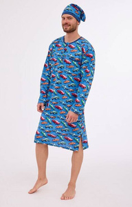 Piżama Męska długi rękaw, długie spodnie Brit talian Fashion - granatowy/druk