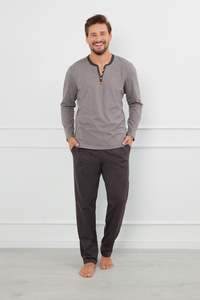 Piżama męska Gordo – elegancki komplet z długim rękawem i prostymi spodniami Italian Fashion - melanż