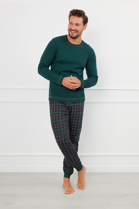 Piżama Męska długi rękaw, długie spodnie Fogo talian Fashion - zielony/druk