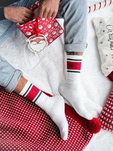 Skarpety świąteczne męskie Milena 1290.040 – prążek z choinką, biały
