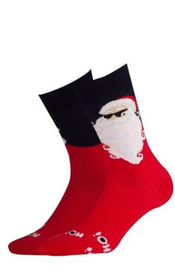 1290-021 Renifer z czerwonym nosem Świąteczne Skarpety Męskie Milena - czerwony