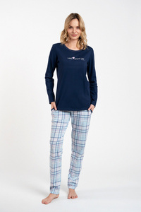 Piżama Damska długi rękaw, długie spodnie Glamour Italian Fashion - granatowy/druk
