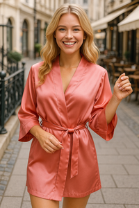 Dagmara Satynowy Szlafrok Damski DKaren - pudrowy róż