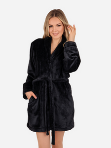 Szlafrok damski polarowy krótki Olivia ByShelly - czarny