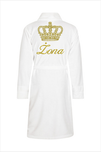 Szlafrok damski polarowy Queen + Korona ByShelly - biały/złoty
