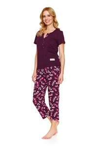Piżama plus size Doctor Nap 7267 – 100% bawełna | Krótki rękaw, spodnie 3/4 - burgundy