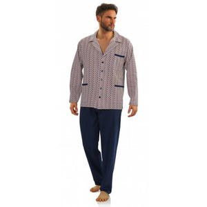 Bawełniana piżama męska, rozpinana 2385/15 Sesto Senso - granatowy/beżowy