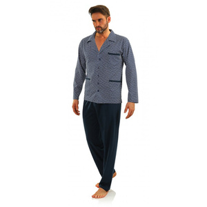 Bawełniana piżama męska, rozpinana 2281/01 Sesto Senso - granatowy