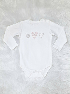 Bambarillo Trzy serca– body niemowlęce ecru z dzianiny bawełnianej, elastyczne i miękkie