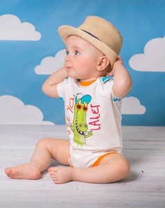 Body niemowlęce długi rękaw "LOVELY" dla chłopca Ewa Klucze druk niebieski