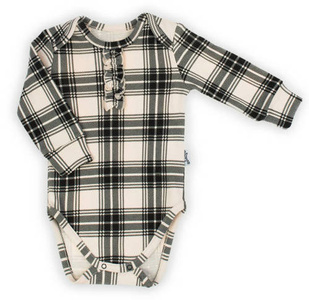 163634 Magia Świąt Body z długim rękawem Nicol - kratka: czarny, beżowy