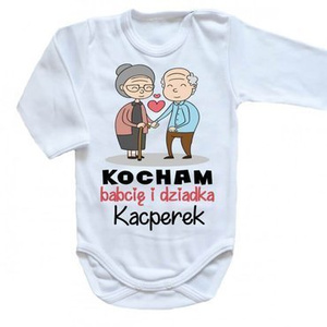 Body długi rękaw "KOCHAM babcię i dziadka z imieniem" Moocha biały