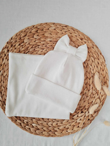 Czapka z kokardką 15K prążek podwójna Marija - ecru