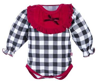 Body falbanka z długim rękawem 182KK Santa Marija - kratka z bordowym dekoltem
