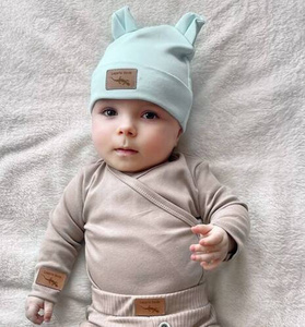 Czapka niemowlęca z bawełny organicznej Psiaki Nini beżowy